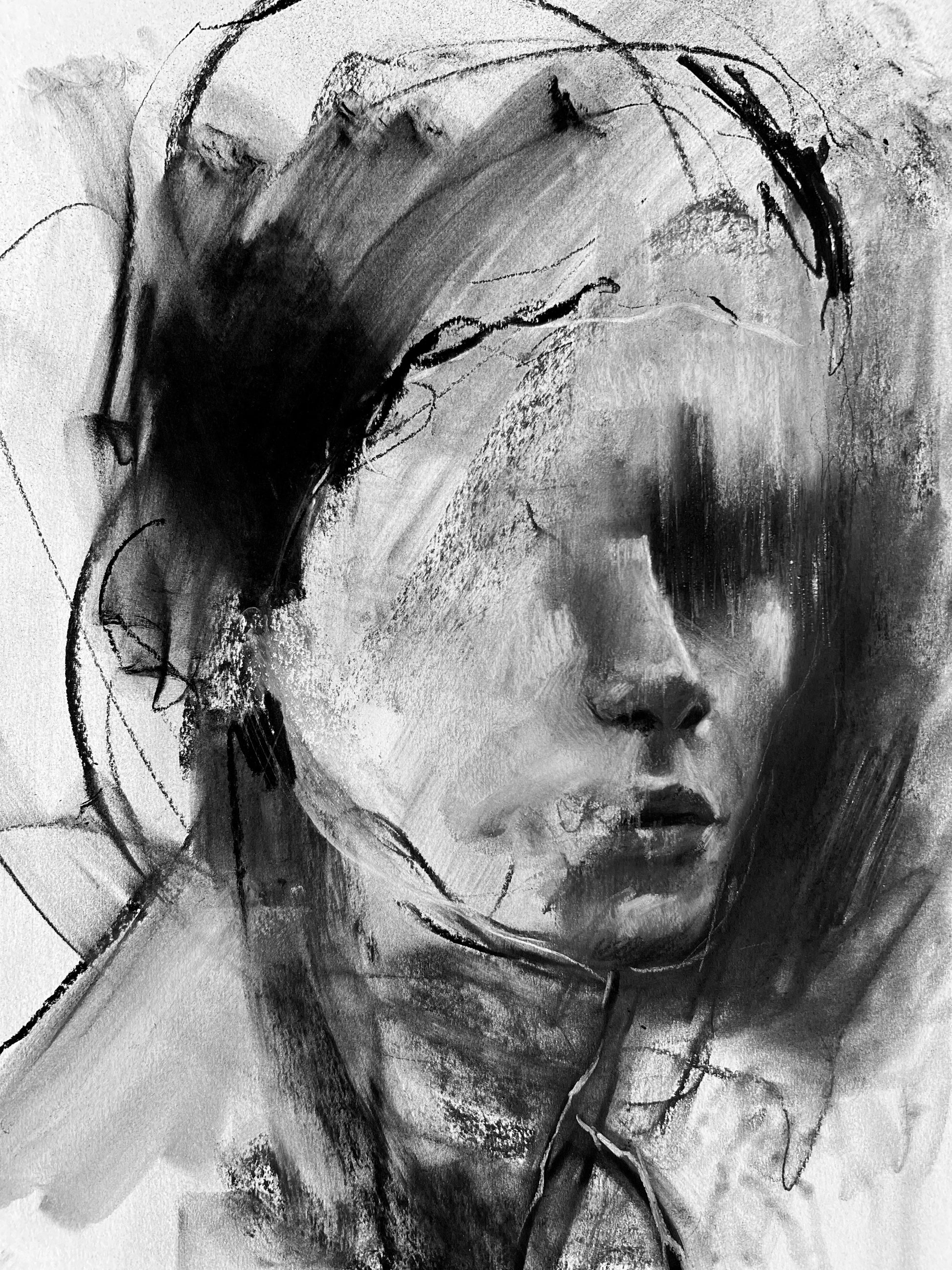 •Each portrait is lightly fixed to preserve the life of the charcoal—alive, delicate, and raw. Touch it, and it may leave a trace on your fingers, a silent bond between you and the artwork.